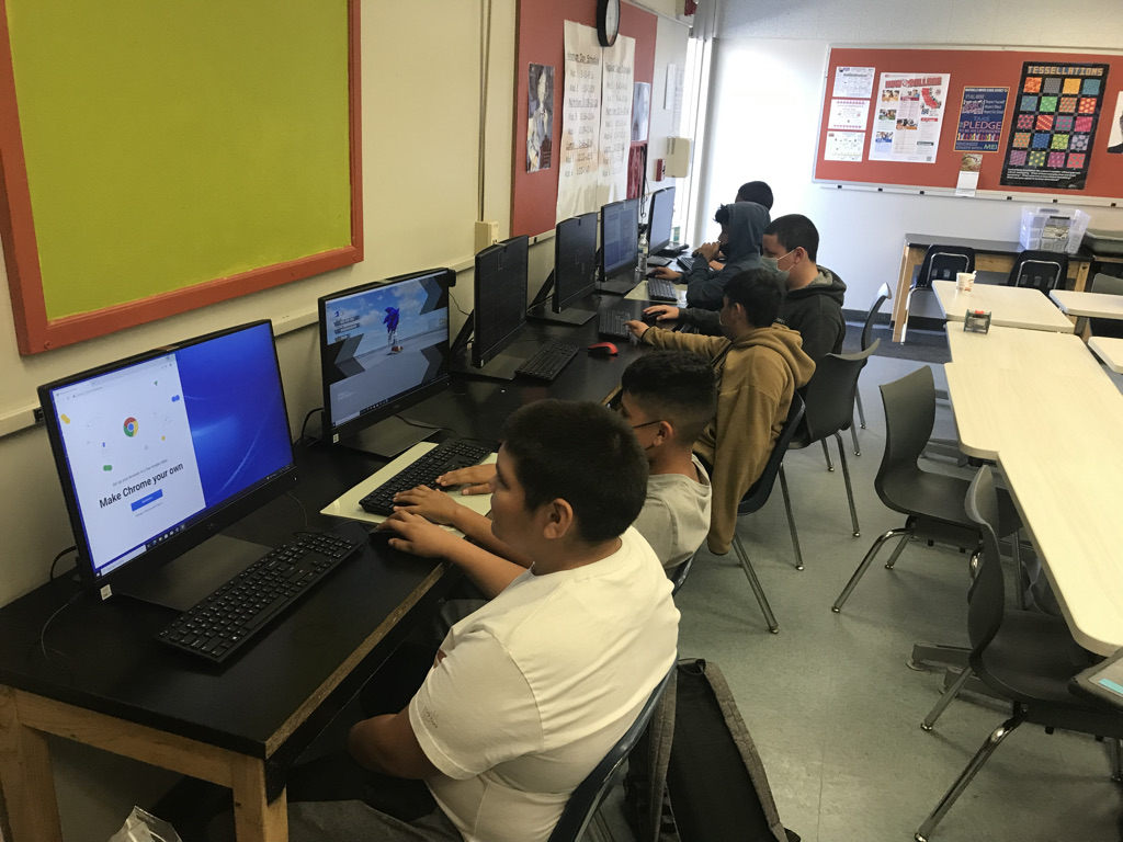 I acquired twelve desktop computers (6 PC’s and 6 iMacs) as part of the STEAM After School Program. The iMacs were acquired for the Garage Band software. I taught guitar as part of the “A” in STEAM. Developing music tracks part by part supports computational thinking by breaking a musical idea down into its individual parts and sections. Writing repeated musical parts (drum tracks, bass lines, vocal background parts) utilizes algorithms when programming.